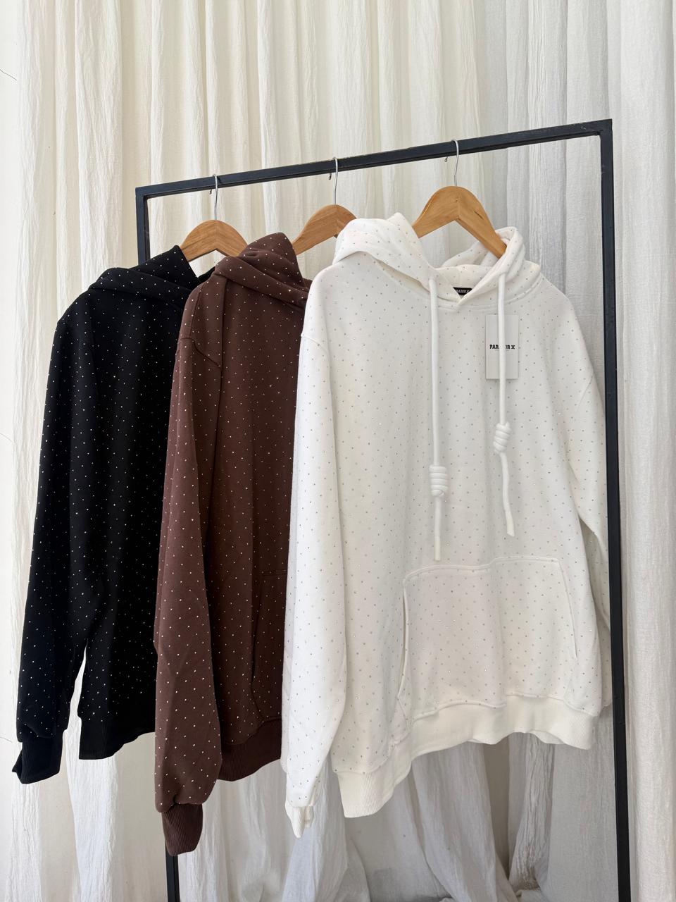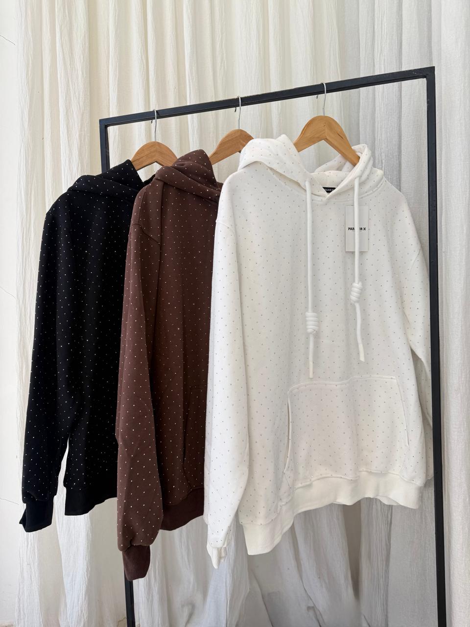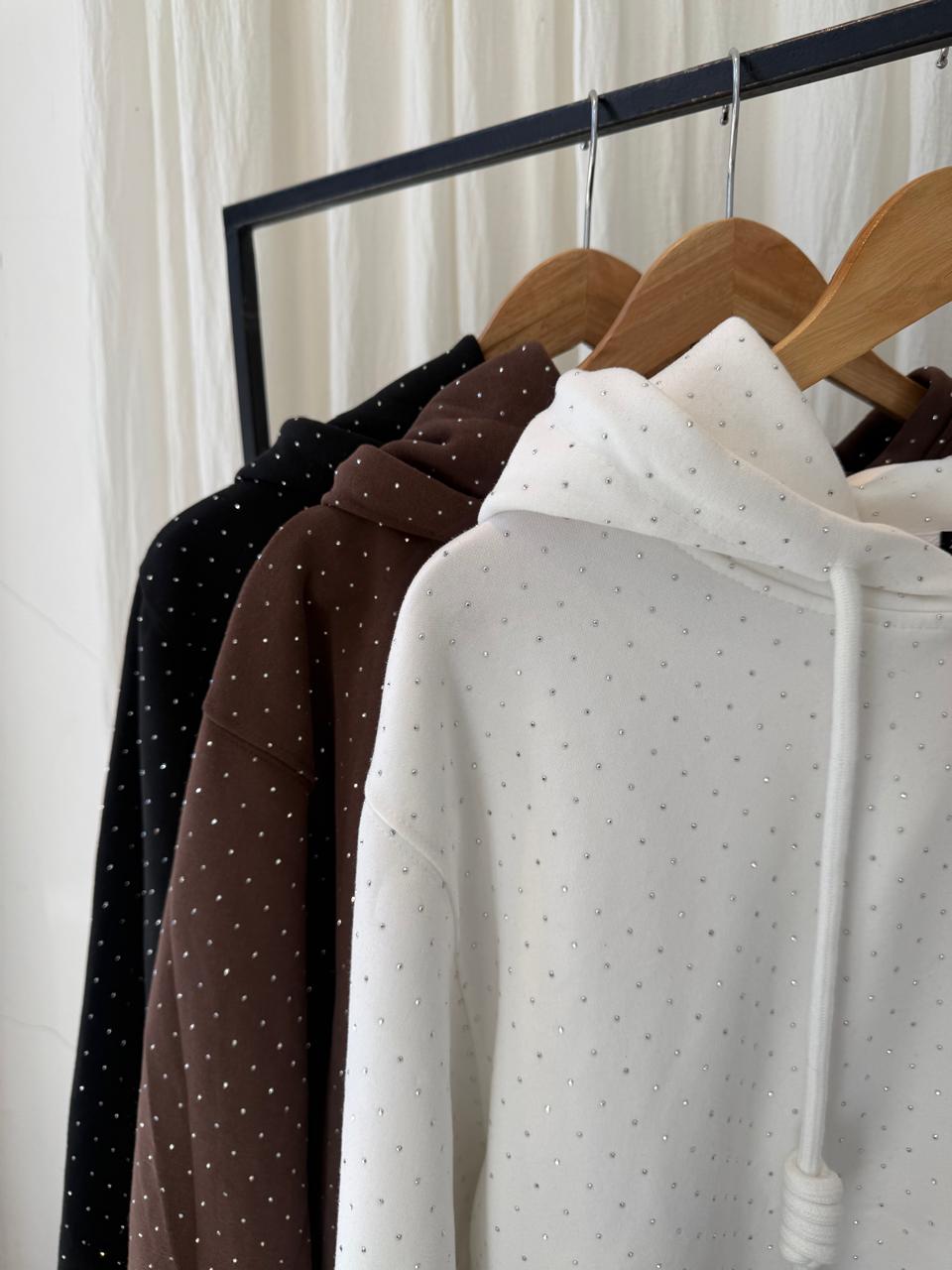 buzo super amplio, strass adelante y atras