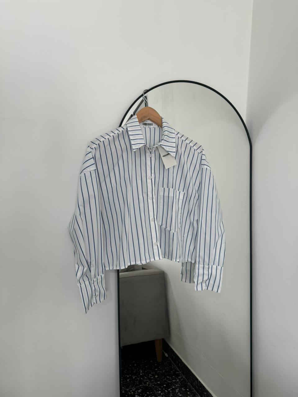 Camisa recta, largo arriba de la cintura, tela poplin
