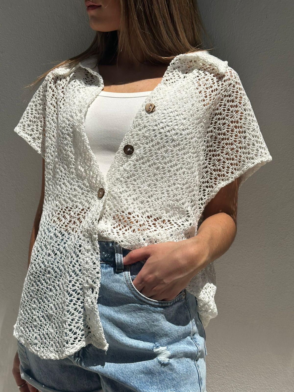 camisa calado, tela hilado acrílico