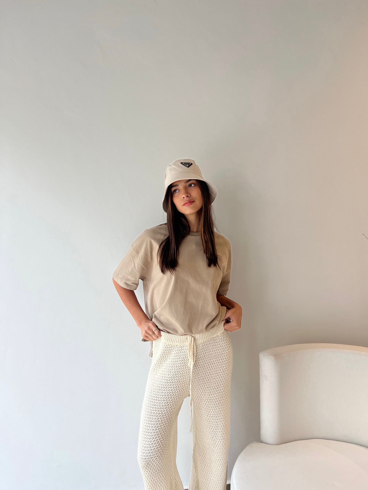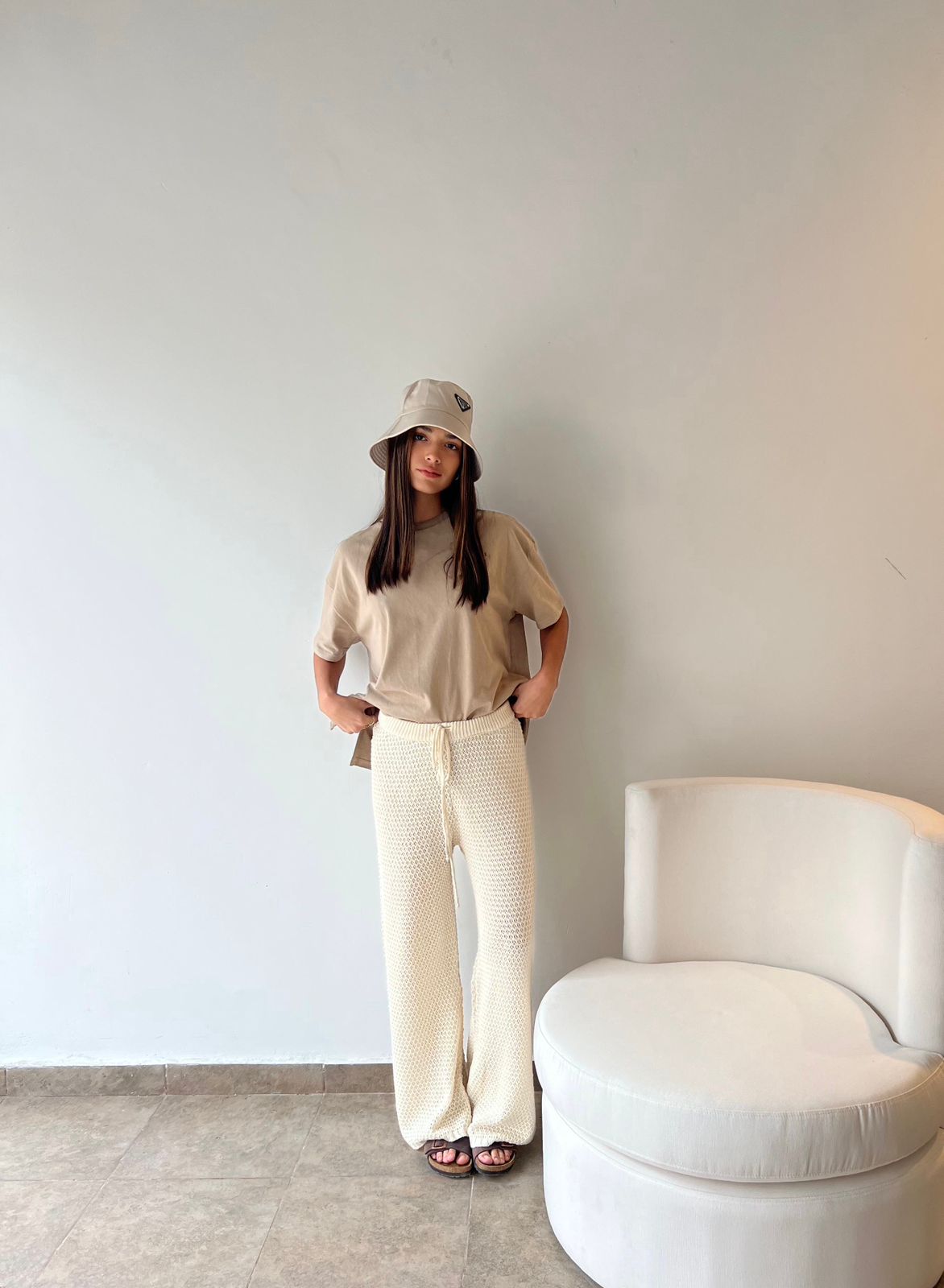 Pantalon ancho calado (tipo crochet), tela doble hilado algodón