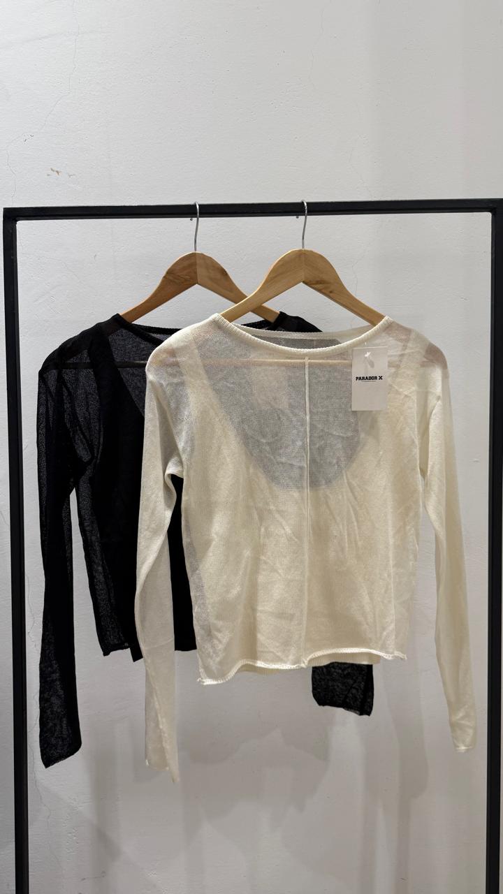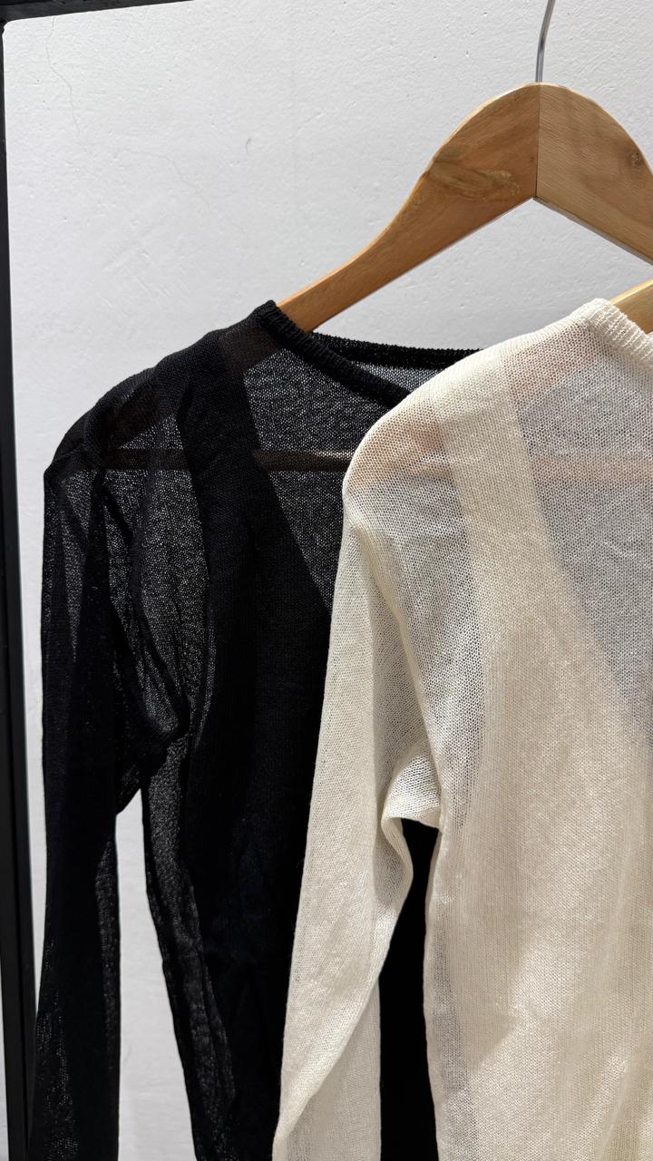 transparencias, remera manga larga y musculosa adentro, 2 en 1. tela hilado acrílico