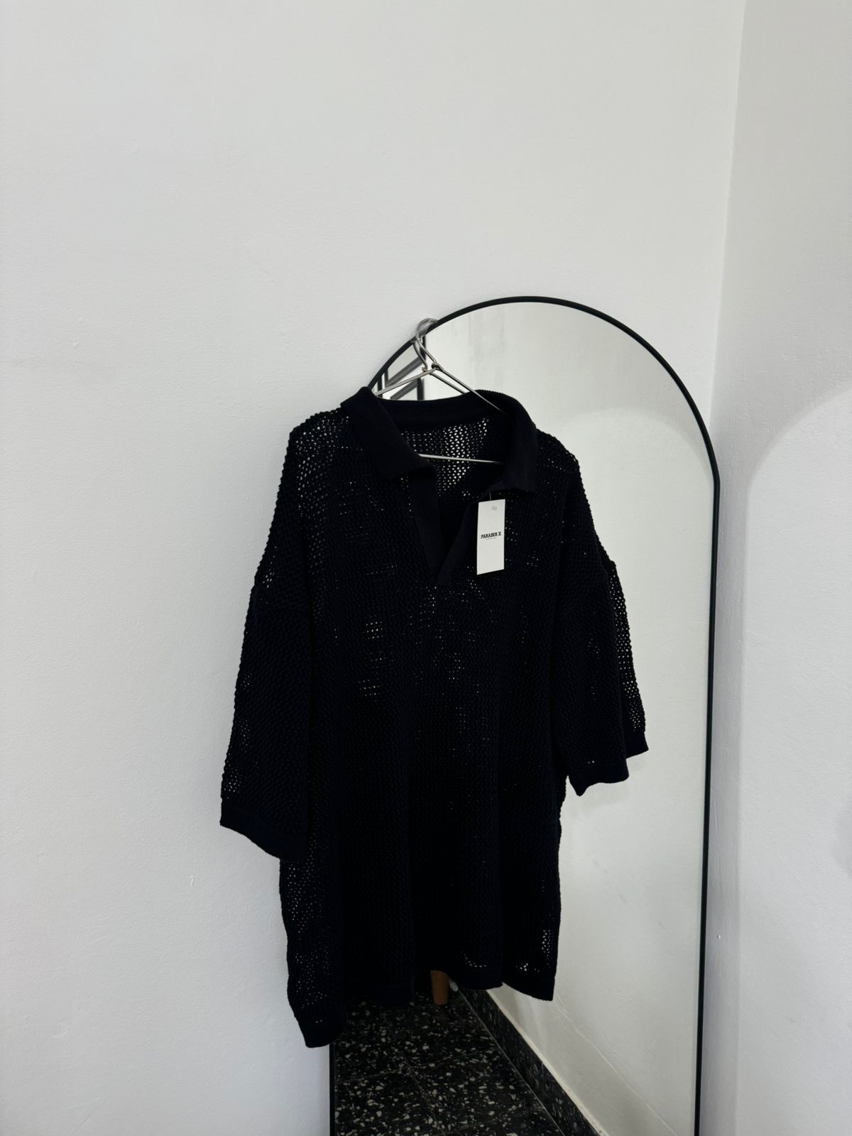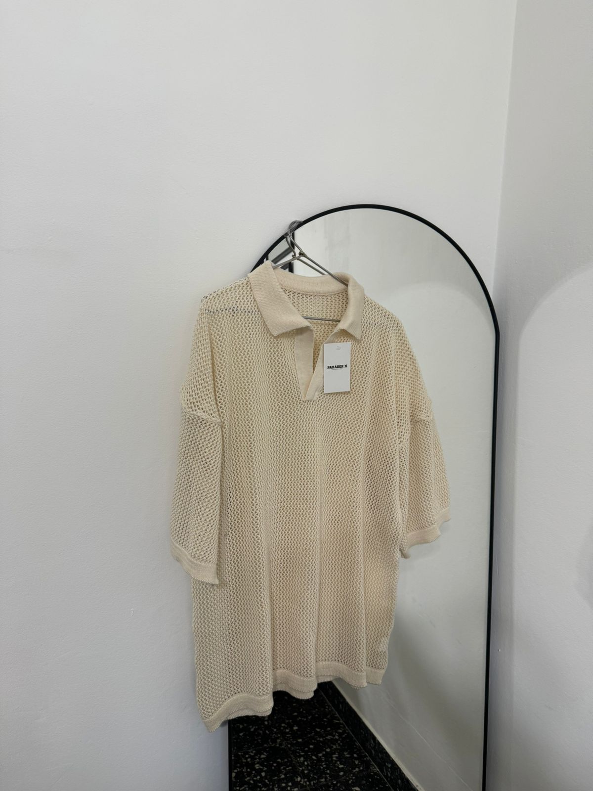 Remera super amplio tejido de punto parecido crochet, tela doble hilado en algodón