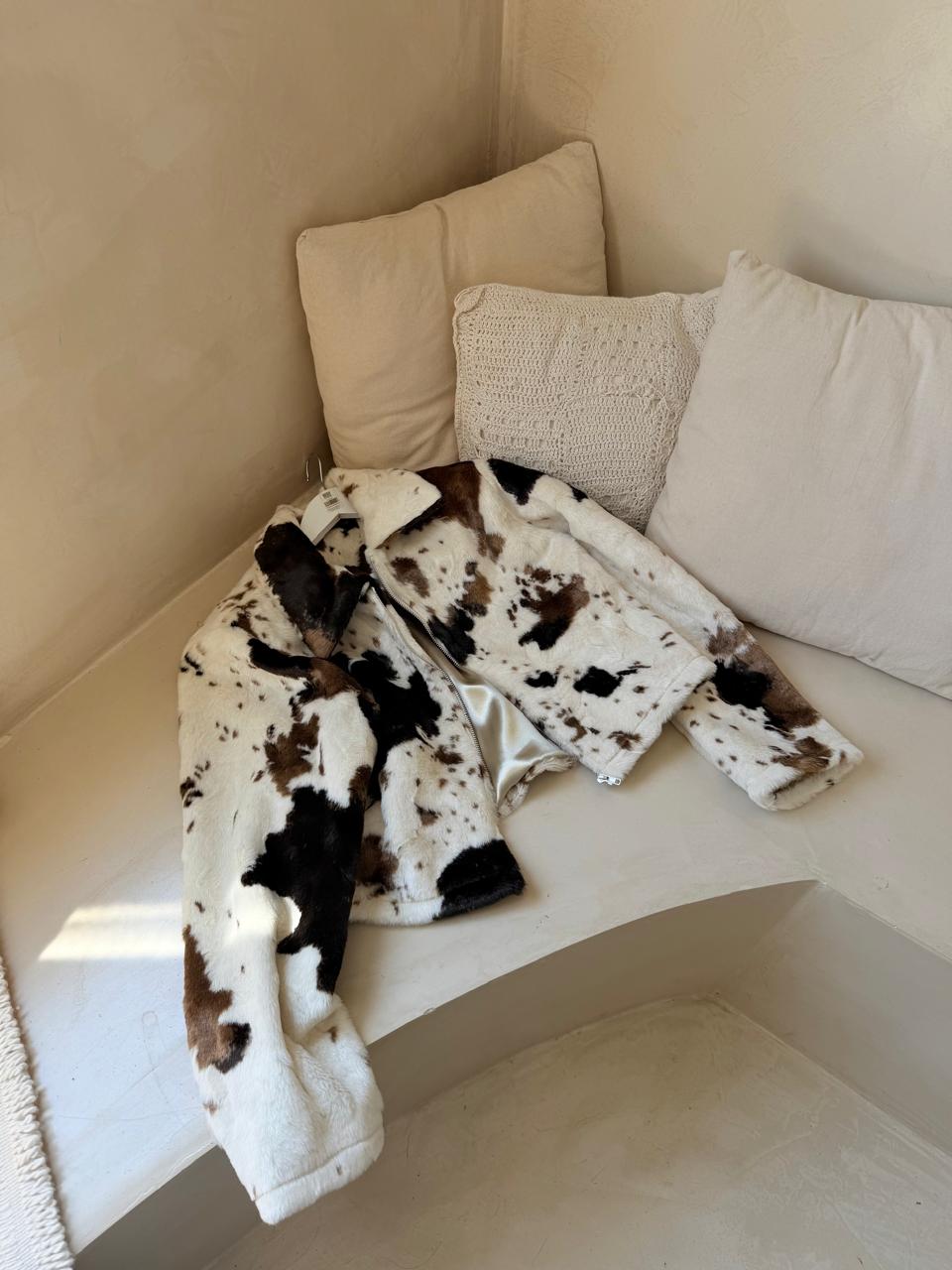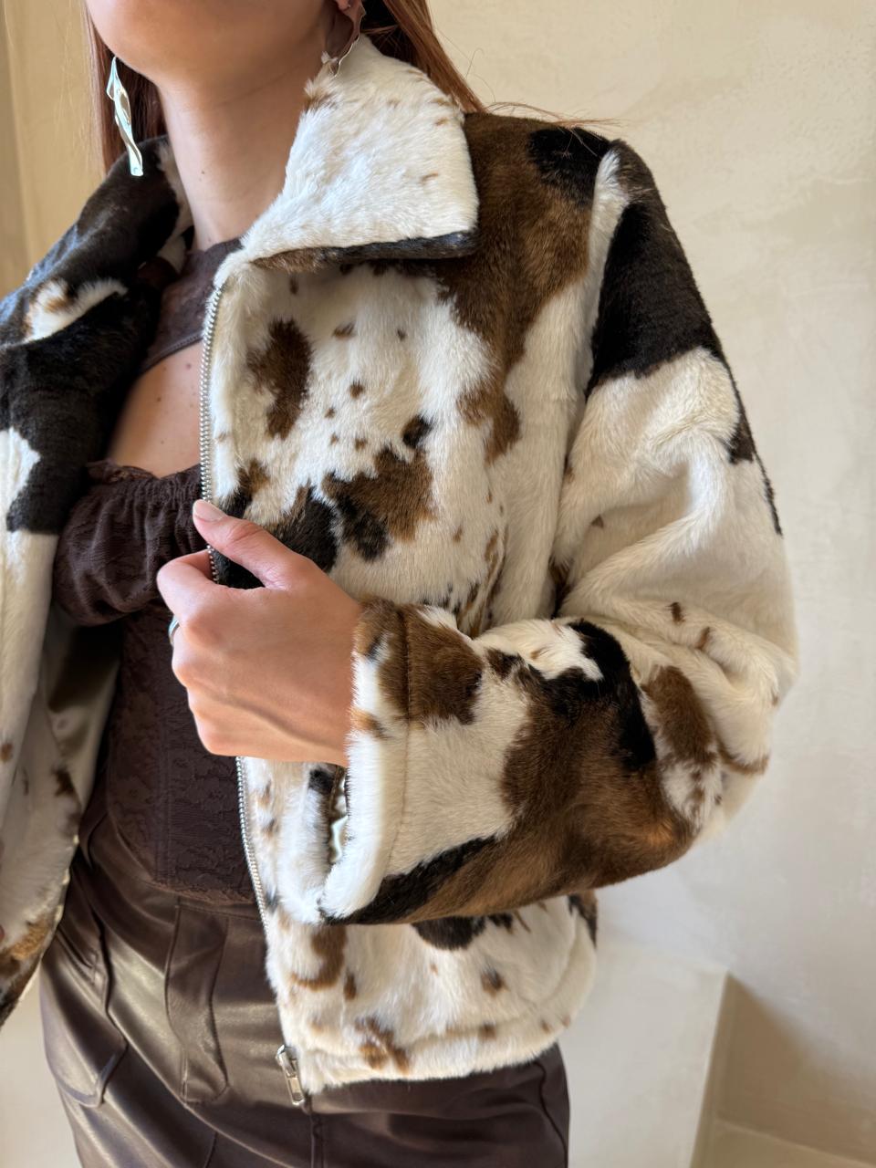Saco forrado, pelo corto sintético, con cierre.