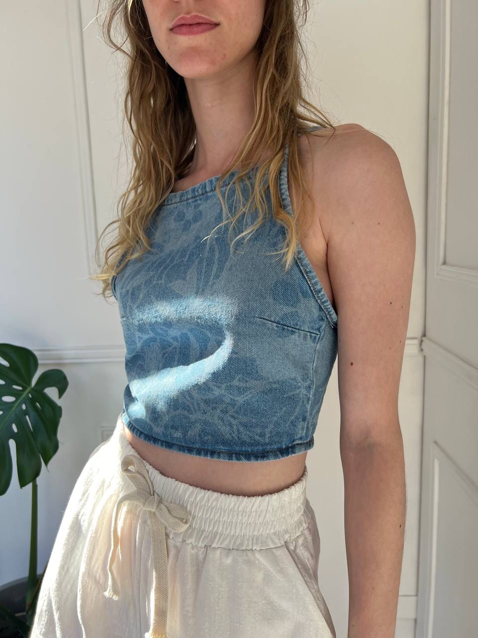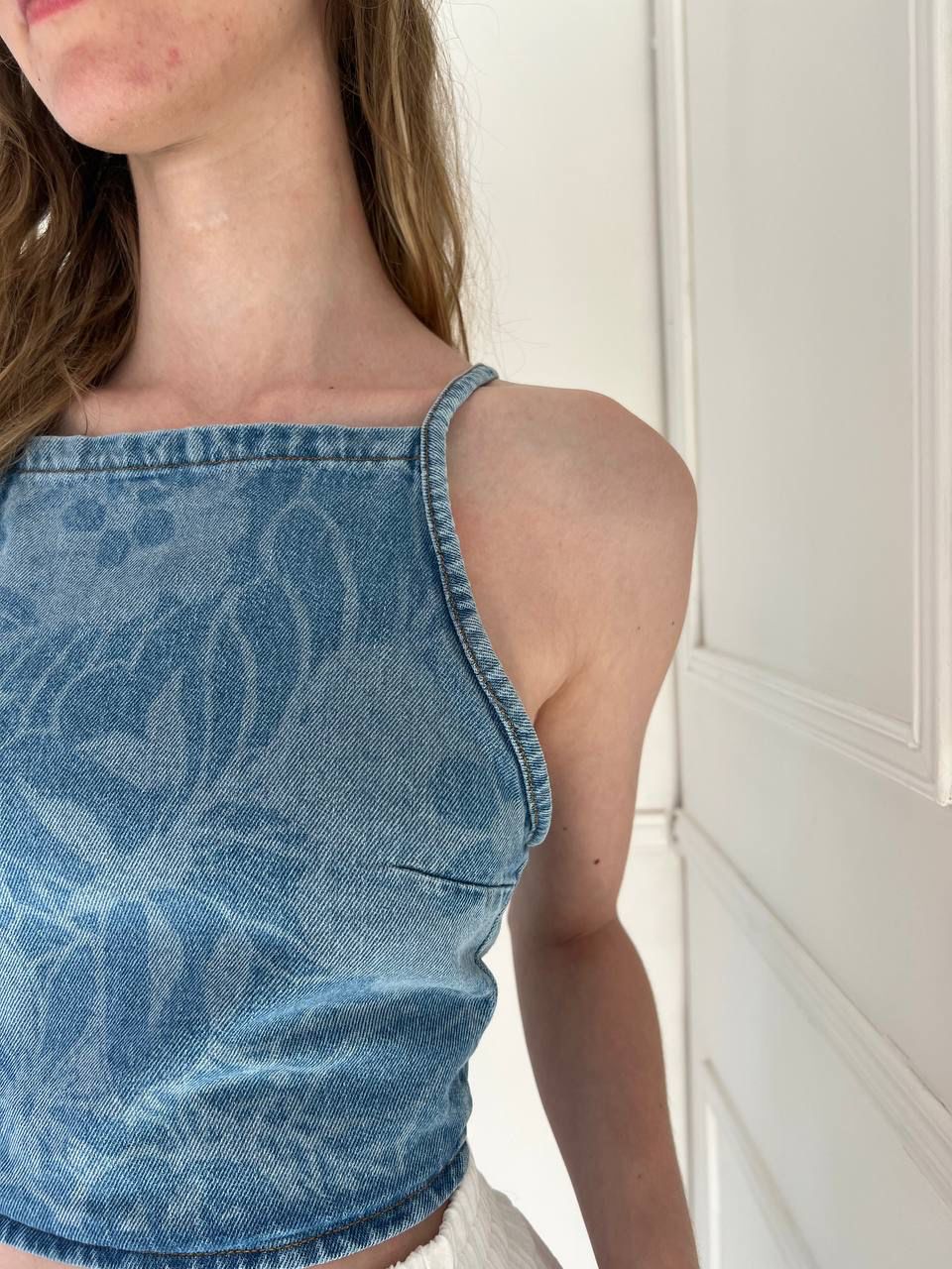 Top de tela jeans, espalda para atar regulable para talle 36,38,40